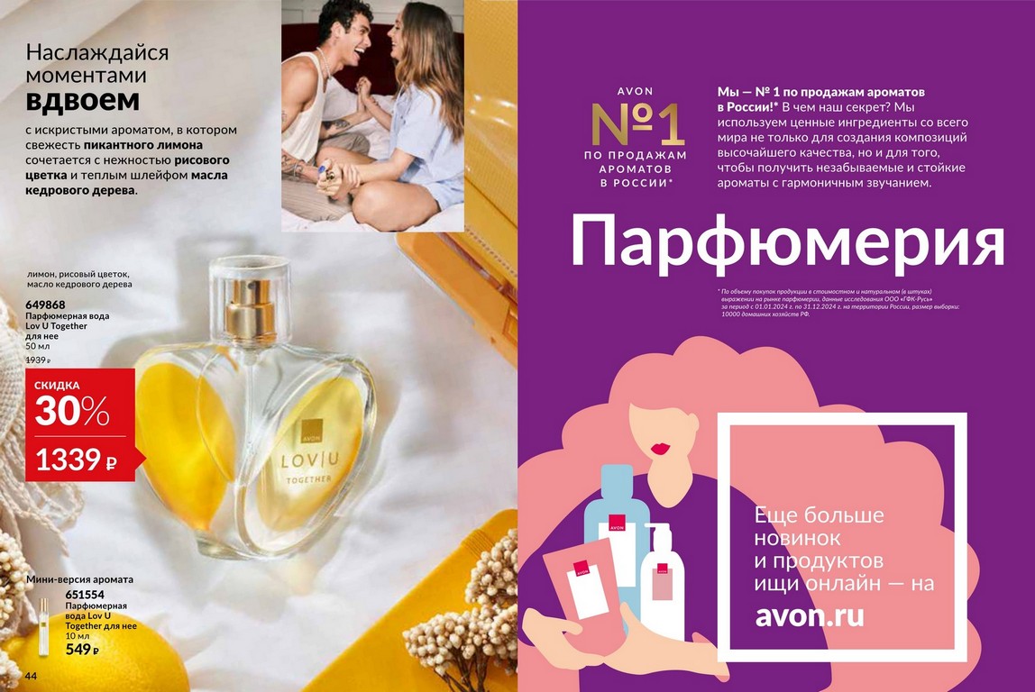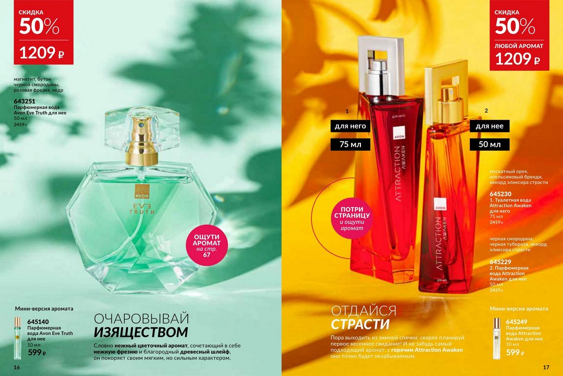 Каталог 03 2026 Avon смотрите онлайн на нашем сайте в супер отличном качестве, с удобной навигацией просмотра страниц срок действия каталога (01.03.2026 — 31.03.2026). Любая женщина это настоящая симфония красоты. Она создана, чтобы восхищать, очаровывать, покорять. Создайте свою идеальную, изумительную историю вместе с ароматом от Avon Будь счастлива для нее! Присоединяйтесь к Avon, скидка 25% и приз!